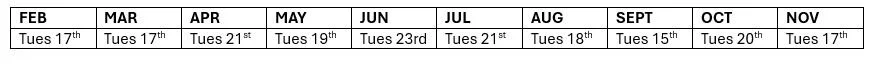 Dates for 2026 are: